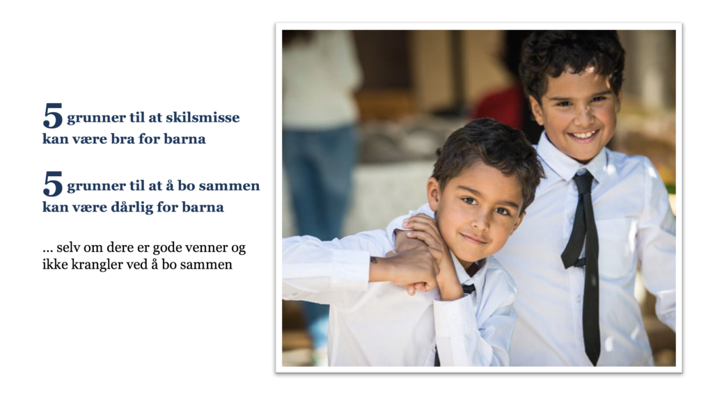 Det store spørsmålet er: Er det riktigst for barna at vi forblir sammen eller er det best for dem at vi går fra hverandre?